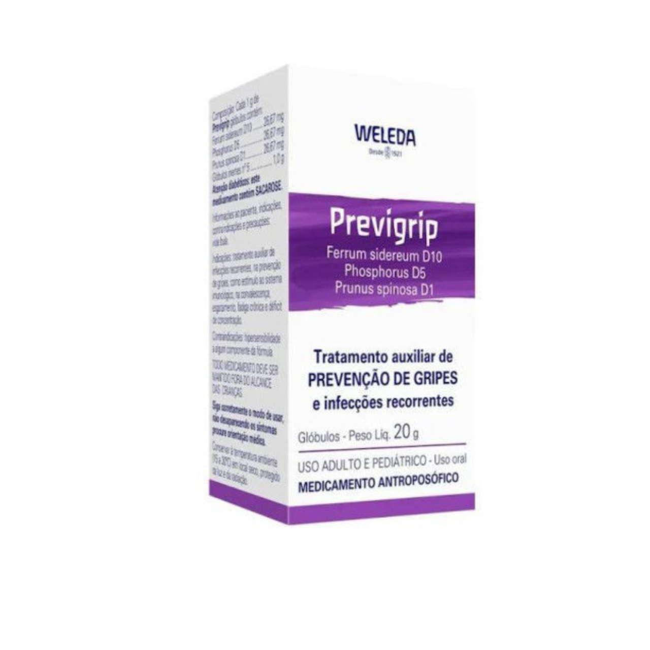 PREVIGRIP GLÓBULOS 20 G é um medicamento antroposófico da Weleda, produzido com ingredientes de origem 100% natural. Indicado no tratamento auxiliar de PREVENÇÃO DE GRIPES e INFECÇÕES RECORRENTES, como estímulo ao sistema imunológico. A indicação deste medicamento somente poderá ser alterada a critério do prescritor.